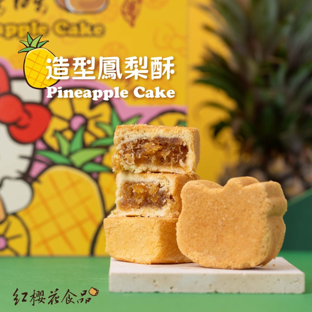 有別以往方方正正的鳳梨酥,紅櫻花獲得三麗鷗授權Hello Kitty,推出超可愛Kitty造型的鳳梨酥,特殊的濃郁果香,果實小、甜度高、酸度低,原始的酸甜果香和纖維,就算成本再高紅櫻花也要使用這麼好的食材,堅持採用純正100%鳳梨熬煮調製而成的鳳梨酥內餡,不添加防腐劑,誠意滿滿的餡料,讓你可以直接品嚐到鳳梨纖維的濃郁果香,健康低糖,加上極佳的Q軟口感,微酸微甜,配上嚴選紐西蘭奶油細心桿製而成的餅皮,外酥內軟,讓你不只吃得美味,看得更開心。